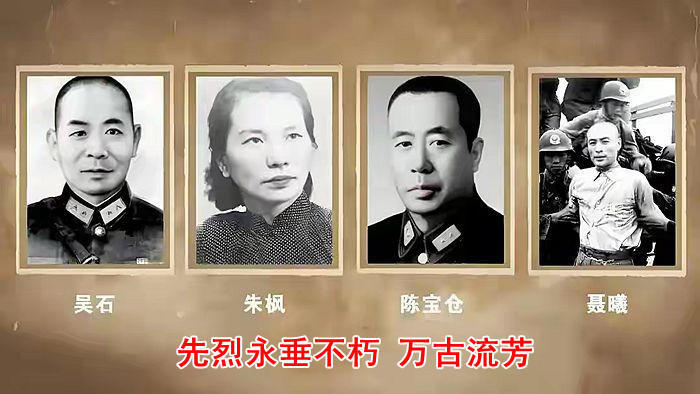 吴石、朱枫、陈宝仓、聂曦烈士永垂不朽,万古流芳